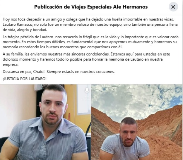 Desde la empresa Ale Hermanos, sus colegas lo despidieron con emotivos mensajes en las redes sociales: