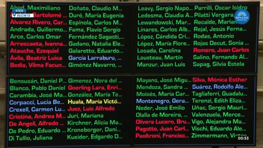 El Senado desestimó un decreto de necesidad y urgencia (DNU) que había destinado más de 100 mil millones de pesos a la SIDE para gastos reservados. La decisión, tomada con 49 votos en contra, 11 a favor y dos abstenciones, marcó la primera vez que el Congreso rechaza un DNU en la actual administración. Este rechazo se produjo después de un intento fallido del Ejecutivo de evitar la discusión del decreto en una sesión especial secreta.