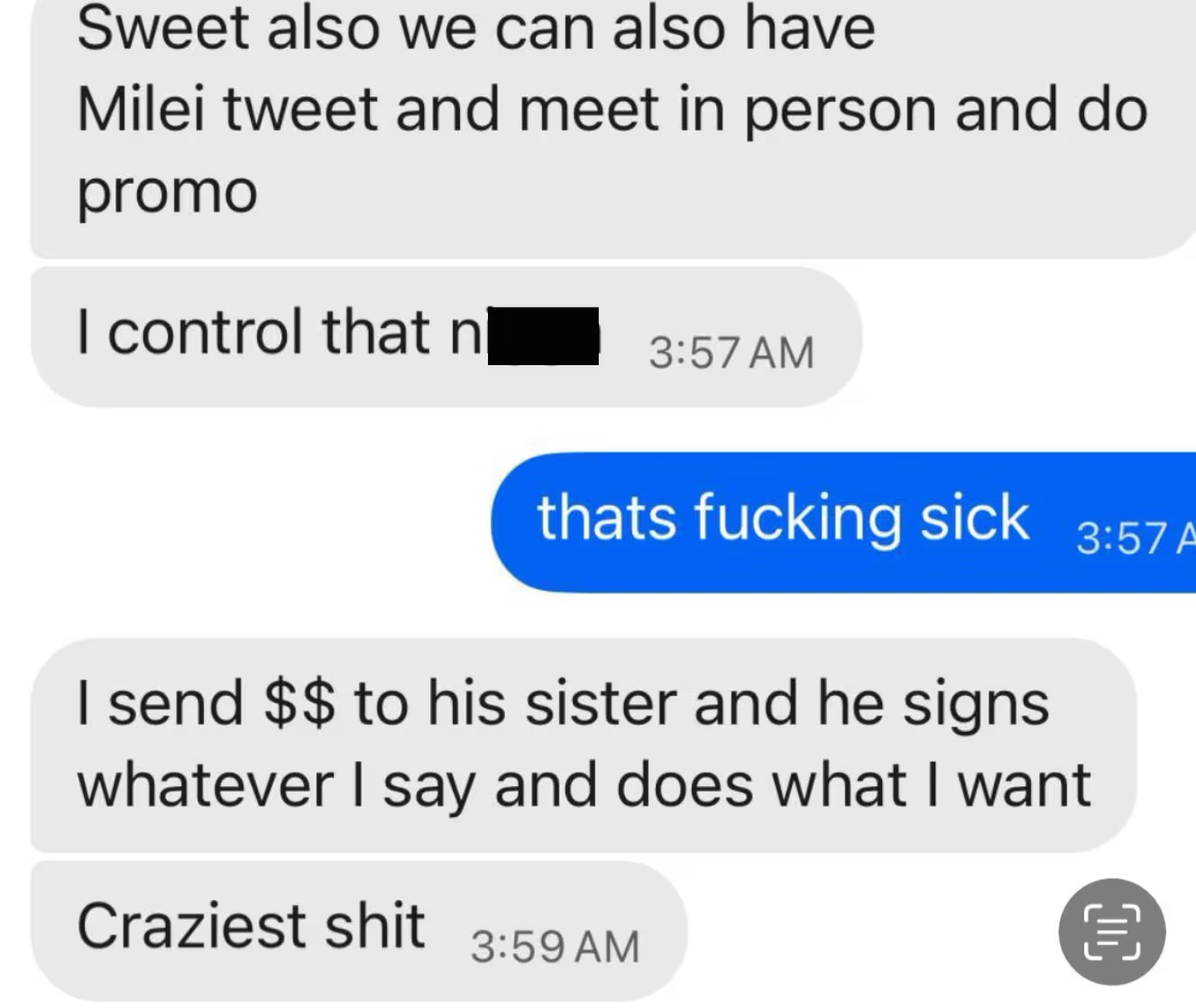 En los chats filtrados, Davis declara: «Yo controlo a ese negro» y asegura que Milei firma todo lo que él desea gracias a los pagos enviados a su hermana. Sin embargo, el entorno de Karina Milei ha desmentido estas versiones, mientras que desde la Casa Rosada rechazan cualquier vínculo con el supuesto escándalo, conocido como el «cripto gate».