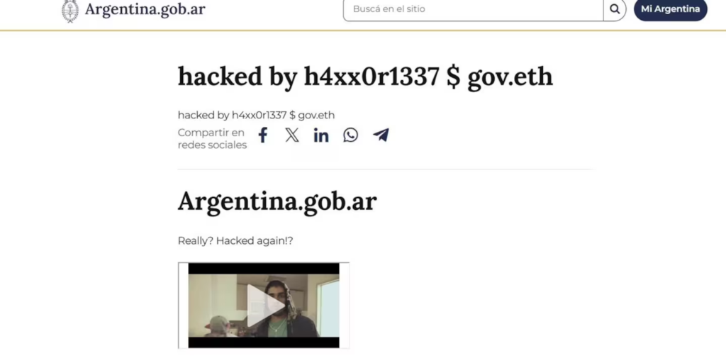 La plataforma Mi Argentina, esencial para gestionar trámites y acceder a servicios del gobierno, sufrió un ataque cibernético alrededor de las 21:30, dejando expuestos los datos de millones de usuarios. El experto en ciberseguridad, Javier Smaldone, alertó sobre el incidente, mientras que la Secretaría de Innovación, Ciencia y Tecnología del gobierno responsabilizó a la gestión anterior por la falta de inversiones en seguridad. Aunque el sitio fue restaurado rápidamente, los atacantes, identificados como «h4xx0r1337», dejaron mensajes políticos y contenido multimedia en diversas secciones.