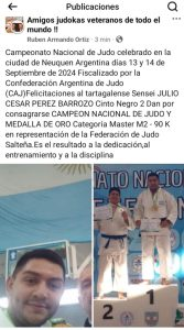 Tartagal vivió un fin de semana vibrante. Mientras Esteban Ribovics brillaba en la UFC 360 en Las Vegas, otro atleta de la misma ciudad alcanzaba la cima del judo nacional. Julio César Pérez Barrozo se alzó con la medalla de oro en la categoría Máster M2-90 K durante el Torneo Nacional de Veteranos celebrado en Neuquén.