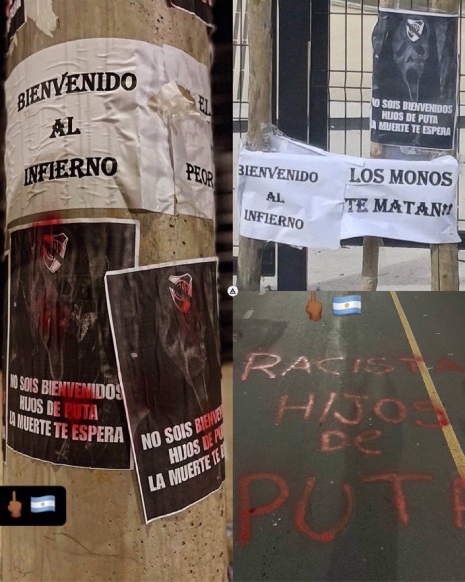 “Bienvenidos al infierno”, dice uno de ellos. “Los monos te matan”, afirma otro. “No sois bienvenidos hijos de puta, la muerte te espera”, se observa en uno más.