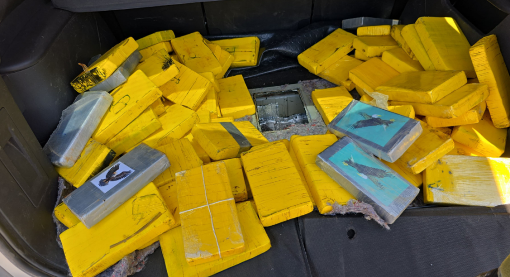 En menos de 20 minutos, los expertos descubrieron 79 paquetes rectangulares con una sustancia blanca que dio positivo para cocaína, totalizando 83 kilogramos. Los gendarmes documentaron el hallazgo con testigos, destacando que los paquetes tenían colores distintivos como amarillo, celeste y gris, y llevaban la insignia de un águila.